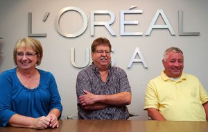 Sherry and Jerry DeVries (from left) along with Bob Giessmann are among the nine employees at Maybelline'southward North Trivial Rock found who accept worked there since it opened four decades ago.