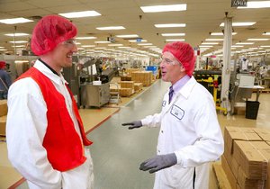 Eric Trick (correct), found managing director, visits with Austin Morman, mascara production managing director, on the flooring of the Maybelline factory in Northward Footling Rock.